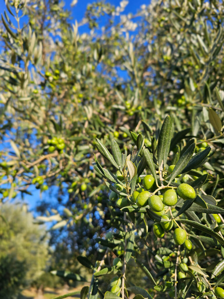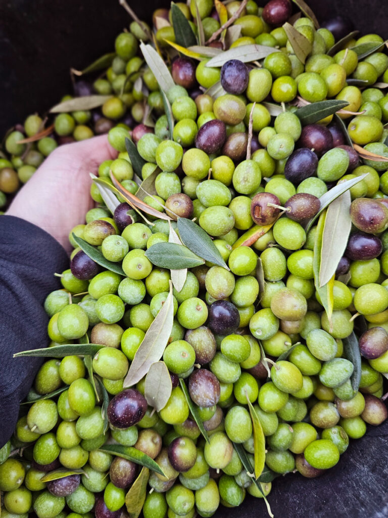 Nous possédons 4,5 hectares d’oliviers la grande majorité pluri-centenaires. La variété est essentiellement de l’ARGUDELL, une olive assez petite mais extrêmement qualitative. Considéré ici en Catalogne comme la meilleure. Ramassé par nos soins à la main et avec un contrôle optimum de la maturité, pas trop verte pour éviter des notes trop acides mais pas noire non plus pour éviter une huile jaunâtre et au parfum dégradé. De fait notre huile fait l’unanimité des connaisseurs. Tous nos oliviers sont conduits en culture biologique.